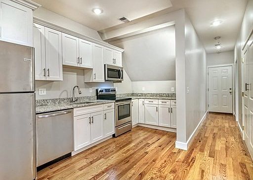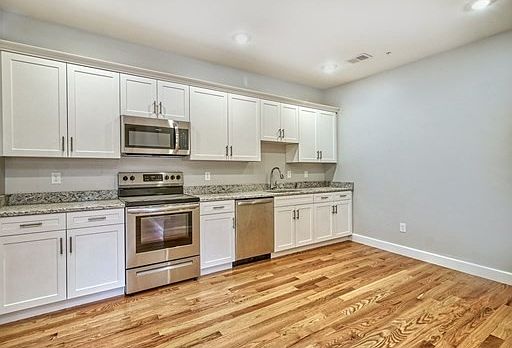 Sunny renovated 2 bed/ 2 bath with recessed lighting and hardwood floors. Large open floor plan with stainless steel appliances and granite countertops. Master bedroom with ensuite bath and walk-in closet. Guest room with double closets and ample space. Central A/C, in-unit laundry room and additional storage closets. 1 parking spot included. Conveniently located near the Malden Centre Station, a variety of shops and restaurants. Rental application, verification of income and credit check required to apply. First month, last month and broker fee required by lease signing. Sorry NO pets. Available for January or February move-in.