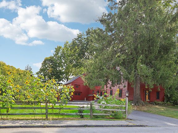 Charming antique colonial with modern features make this Derry Village home a rare find. Conveniently located within walking distance to Pinkerton Acadamy and minutes from 93 on nearly 1 acre of beautiful green space with perennial gardens. Upon entering the 4-bedroom 2.5 bath center entrance colonial, you will be greeted with a combination of modern amenities and antique charm. The large eat-in kitchen has been updated with stainless steel appliances, radiant floors and a nod to the 18th century with soapstone countertops and reclaimed American chestnut flooring. Throughout the house you will see post and beam construction, wooden doors with antique latches, original Moses Eaton stenciling blended with 3 zone heat, updated windows, updated bathrooms, and a new roof. Unique primary suite with ensuite bathroom, walk in closet and access to second floor porch overlooking the yard. There is potential for expansion in the attached 3-story 29 x 29 barn, which currently has room for parking, a workshop, rec room, as well as heating, electrical and plumbing futures in place. The Barn offers plenty of storage for in house business potential.