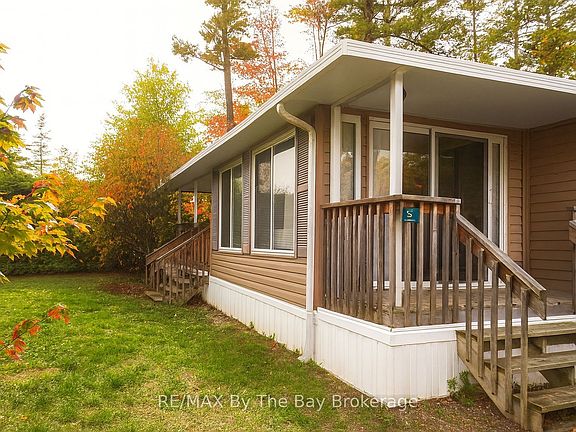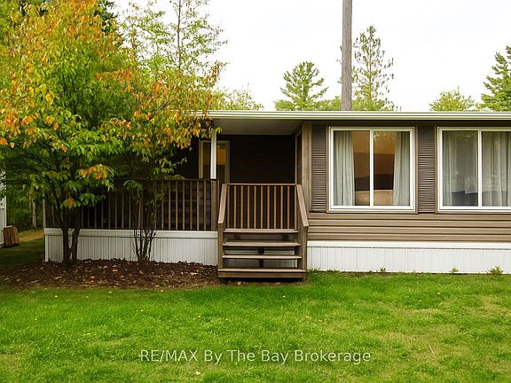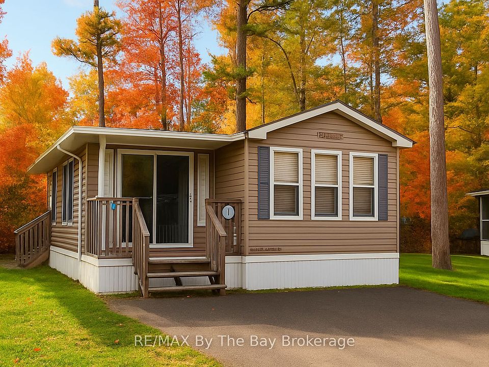 Turn-Key Three-Season Cottage in Wasaga CountryLife Resort! This fully furnished and move-in-ready mobile cottage offers comfortable living with two spacious bedrooms. The living room features a versatile pull-out sofa, and the bright sunroom also includes a pull-out sofa, providing ample sleeping space for up to nine guests or family members. The sunroom is perfect for relaxing and enjoying the outdoors throughout the season. Ideally located within the resort, this cottage is just steps away from swimming pools, a children's park, and scenic trails that lead to the beautiful beaches of Georgian Bay. The yard is enhanced with mature spruce and maple trees, creating a peaceful and private outdoor oasis. Conveniently close to shopping, golf courses, and other amenities, the park also features a lively recreation center that hosts events and activities for all ages. This is an ideal getaway for those seeking a vibrant community and easy access to both nature and leisure. 2025 Seasonal Site Fees $6504 +HST. Sale price includes $750 2026 Site Fee Deposit