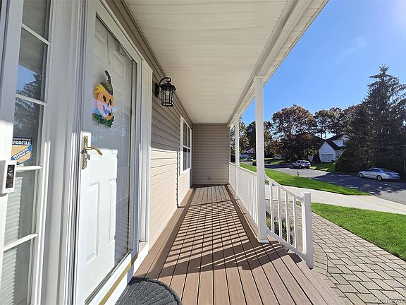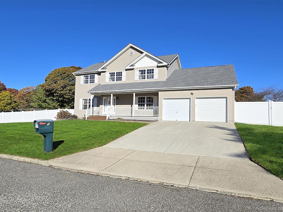 Your search is over once step inside 5 North Street in Coram! Beautiful Victorian Colonial with 4/5 Bedrooms and 2.5 Bathrooms. Full unfinished basement with 9 feet ceilings. Hardwood floors in Entry Hall, formal living room and formal dining room. Den has gas fireplace. There is a large kitchen separate eating area. Laundry room is off the kitchen. Recessed lighting. Home has sewers. The home also features Central air conditioning, brand new gas furnace (2025). The Patio was installed (2015), concrete pavers and front Trex Porch (2019). There is a 1 year young In-Ground sprinkler box (5-Zone). Pavered walkway and cement driveway. Front PVC Vinyl Fencing and full fenced yard. The roof is 8 years young. Shed with newer roof and so much more! Property is .39 Acres. Ready to move right in!