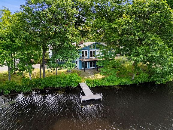 One of kind family home on highly sought after Norwoods Pond. Tranquility all around on this private road with open space on one side and the pond on the other. This ranch offers single level living with all beds, kitchen, living, laundry and 2 baths on the first floor. Expansive composite deck overlooks peaceful pond perfect for wildlife watching, kayaking or fishing. Walk out basement with full bath and wet bar leads out to an indoor pool, great for entertaining or personal use. Newer dock on over 100 ft of pond frontage facing conservation land. Heated two car garage and well kept mechanicals. In ground storage shed, professional landscaping and tons of flat lawn space on this 3+ acre parcel. Large, glassed in atrium on first floor provides pool ventilation. This home provides endless potential for it's next owner.
