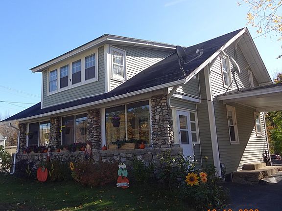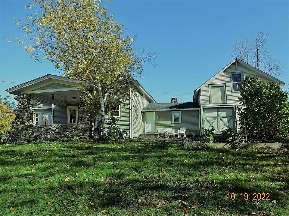 Lovely home that has seen many updates in the past 5 years. Furnace, Water Heater, Water Softener, Oil Tank, Siding, as well as the included electric appliances. The family room has a wood heated fireplace. A formal dining area has lovely built in cabinets, and is located off the kitchen. Lovely Tin Ceilings on the Family Room and adjoining Dinning Room. The laundry location is in the first floor half bath. The front of the home has an enclosed front porch along with the sitting room above it. All 3 bedrooms and full bath are located on the upper level. The side carport allows room for one vehicle, and is located at the entry door to the mudroom and kitchen. Most windows are newer thermal. Replaced entry doors. The garage parking is under the rear of the attached multi level barn, with plenty of room for storage or work bench hobbies. Great location with convenient and easy access to major routes. Near lakes and schools. The side yard fence has been updated The 3 story barn is attached and direct entry parking from the basement area. A must see!