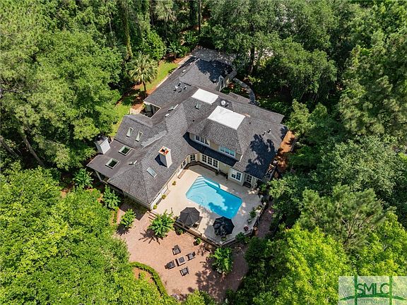 Welcome to 5 Oak Glade at The Landings. Truly a one of a kind home with extraordinary grounds. Stunning landscaping, brick courtyard with meandering hedge and crepe myrtles, full privacy fence surrounding the backyard, and heated gunite pool. Unmatched privacy at the end of a cul-de-sac with woodlands on two sides...there is nothing comparable in The Landings. Brand new screened in porch with tabby fireplace and skylights. This 4 bedroom 4.5 bathroom home is move-in ready. Master on the first floor with door to the patio includes marble vanity and separate bath and shower. Upgraded kitchen with Carrera marble countertops and stainless steel appliances opens into a large family room with an additional dining area as well as a sunroom with soaring windows. The home also features a formal dining room with seagrass wallpaper, formal living room, two fireplaces, and large whimsical laundry room. Come see this beautiful and one-of-kind home while it is available!