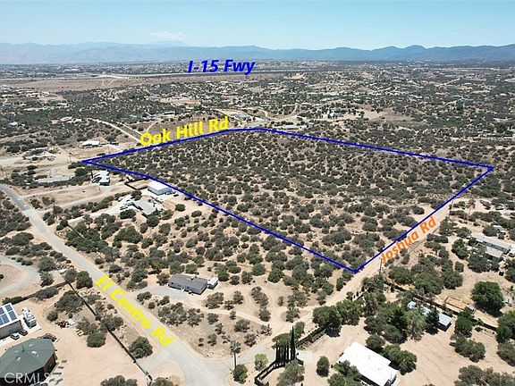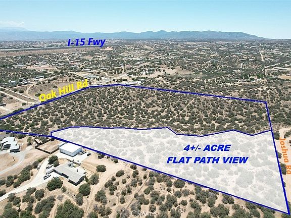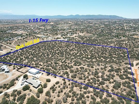 LOCATION, LOCATION, LOCATION!!! 25 ACRE PRIME LAND in Oak Hills, California, with water, power, and gas on the street. Nestled between paved Oak Hill Rd with 830ft frontage and Joshua Road 660+/-ft frontage, just a short 3-mile drive to the I-15 Fwy North/South Interchange at Ranchero Rd, and a short drive to all the amenities in all the High Desert. This property can be subdivided into 10-2.5 acre or 5-5 acre buildable lots for a multi-unit development, or proceed with your plans and build out your exclusive dream castle at “The Upper 4+/- acre flat Deck” at the northwest corner of this lot for a large Ranch type setting with rolling hills, and breath taking views of the mountains which makes it one of the best building paths in the area, and private space. Custom Homes surround this location, providing the perfect balance of privacy and community, just minutes away from the mall, grocery stores, other major retail stores, and Schools. Don't miss out on making this your dream Home or project.