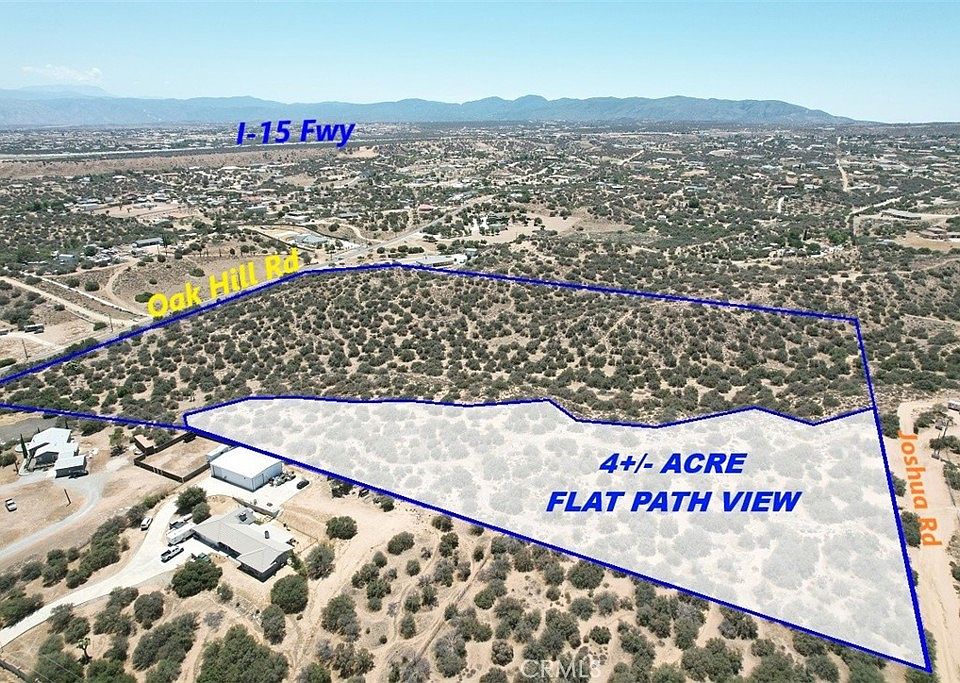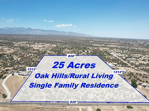 25 ACRE PRIME LAND in Oak Hills, California, with water, power, and gas on the street. Nestled between paved Oak Hill Rd with 830ft frontage and Joshua Road 660+/-ft frontage, just a short 3-mile drive to the I-15 Fwy North/South Interchange at Ranchero Rd, and a short drive to all the amenities in all the High Desert. This property can be subdivided into 10-2.5 acre or 5-5 acre buildable lots for a multi-unit development, or proceed with your plans and build out your exclusive dream castle at “The Upper 4+/- acre flat Deck” at the northwest corner of this lot for a large Ranch type setting with rolling hills, and breath taking views of the mountains which makes it one of the best building paths in the area, and private space. Custom Homes surround this location, providing the perfect balance of privacy and community, just minutes away from the mall, grocery stores, other major retail stores, and Schools. Don't miss out on making this your dream Home or project.