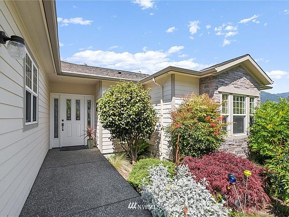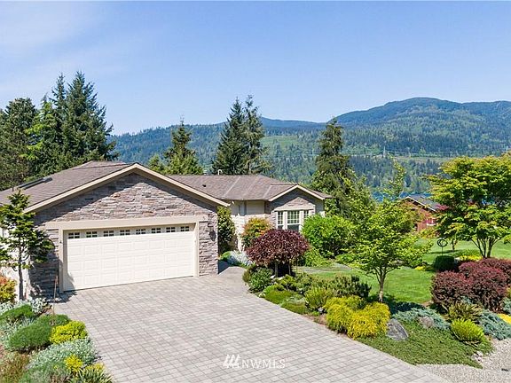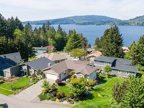 Immaculate custom built daylight rambler sits on a beautifully landscaped, sunny lot in Gate 1 featuring Lake Whatcom views and is walking distance to the lake. You will love the huge chef's kitchen w/oversized island, beautiful oak cabinets, granite counters, convection microwave, and kick vac as part of the whole house central vac. Enjoy the ambiance created by the three sided natural gas fireplace visible throughout the main living space. Relax in the oversized master suite on the main with lovely window storage bench, en suite bath with radiant floors, his & hers sinks plus more storage and large walk-in closet. Additional features include 350 sq ft bsmt shop space, fully insulated garage, 60 year roof, multiple gardens & much more.