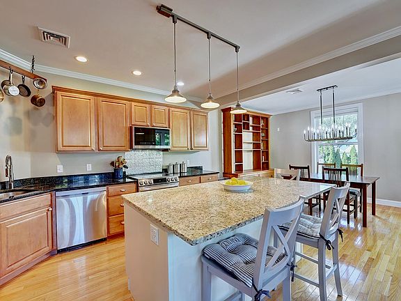 Tucked away in Portsmouth’s vibrant West End, 5 Old Parish Way (also known as 'Olde Parish Way'), this sun-filled townhouse combines modern design with the convenience of city living. Just a short stroll to neighborhood cafés, restaurants, and boutique shopping, and less than a mile from Market Square, you’ll love being close to everything while enjoying the privacy of a quiet cul-de-sac community. Inside, oversized windows flood the home with natural light, creating a warm and welcoming atmosphere on every level. The open main floor is anchored by an oversized kitchen island with granite counters, stainless steel appliances that flow seamlessly to the dining nook and living room with a double-sided fireplace. Upstairs, the primary suite offers vaulted ceilings, a walk-in closet, and a recently updated bath with dual shower heads. A second en-suite bedroom and a convenient laundry room complete the level. The finished walk-out lower level opens to a private fenced patio, perfect for entertaining or quiet evenings outdoors. With central A/C, on-demand hot water, garage parking plus two additional spaces, and a low-fee association handling landscaping and snow removal, this home blends easy maintenance with upscale living. Quick access to commuter routes, nearby beaches, and Seacoast attractions makes this the ideal retreat to fully experience the Seacoast lifestyle.