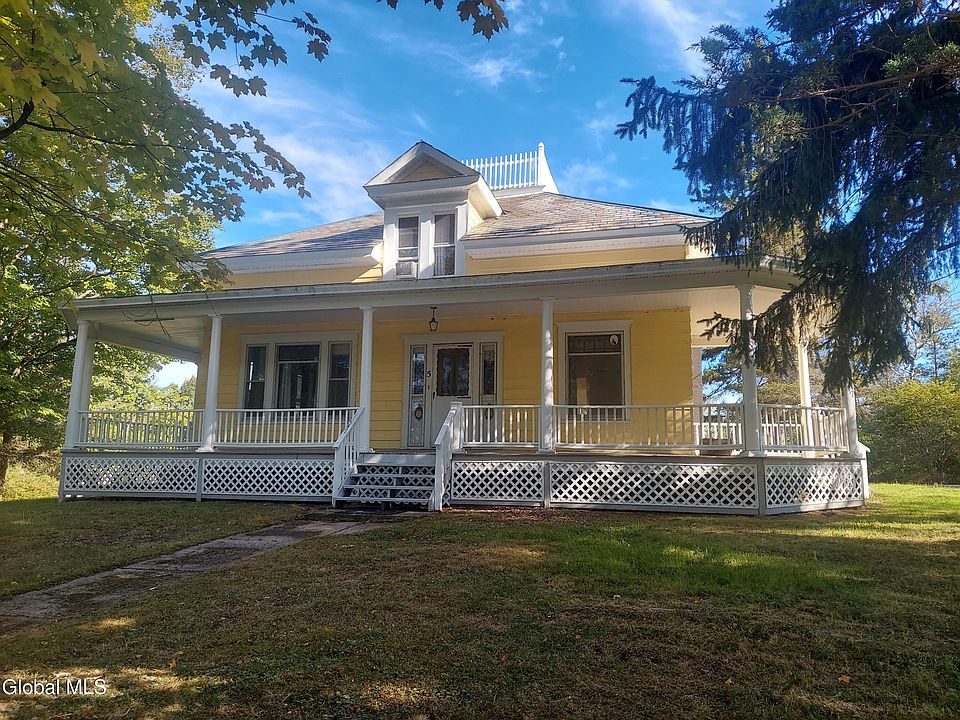 Selling As-Is, Country 1-1/2 Story, 1ea flr, 1st fl recently vacant. Tax Records state 1861sf which excludes area of ceilings <7ft, is ~2253sf where ceilings >5ft. Corner lot, lg lawn, half bsmt, water treatment, separate utilities, Oil heat, coin-op laundry. hd-wood, carpet & Linoleum, all carpet New. Hiking, biking, Snowmobiling. Stroll to paddle, swim, fish, town & State parks, store, PO, Senior Ctr, Church, Library. One of oldest homes in Grafton, W ornate metal ceilings, brick accents, wrap-around porch, cathedral ceilings, slate & asphalt roofs, widow's watch. Some items & surfaces showing wear/age. Great location, easy commute 25min to Troy/Williamstown, 30min to Jiminy Peak/Berkshires, 40min to Albany/Bennington, 1hr to Lake George/Saratoga. Tax record states 1861, floorplan provided shows 2253