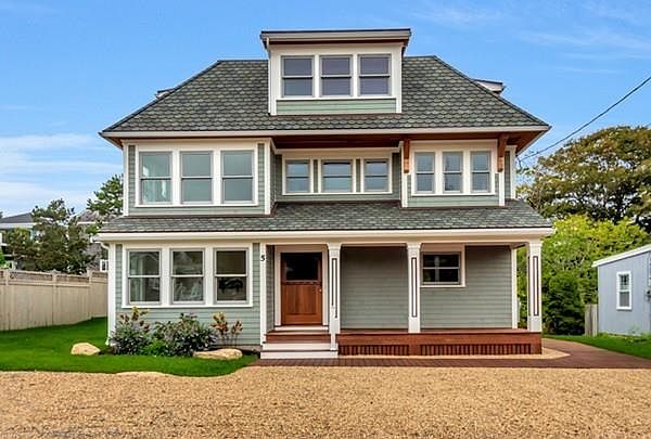 Luxury New Construction with water views! Set perfectly between Long and Good Harbor Beaches, this thoughtfully built home is filled with high-end finishes inside and out. Beautifully designed with an open concept living space and gleaming hardwood flooring throughout. The gorgeous custom kitchen features a massive center island, gas stove, decorative glass cabinetry and quartz countertops. The main floor also features sliders to a beautiful deck and laundry room with custom storage. The second level has 4 bedrooms including a master suite with ocean views and ensuite bath with double vanity sink and tiled shower. Entertain and enjoy the third level bonus room with full bath and roof top deck, also with ocean views. Exterior highlights include an inviting covered porch, wood shingles, tons of windows, gorgeous rear deck and professional landscaping. Within walking distance to both top beaches, the location and style make it an ultimate dream home.