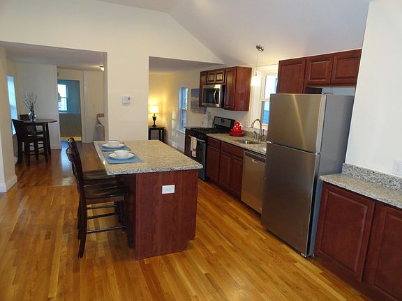 Newly-renovated second floor 3 bedroom, 1 bathroom apartment in great area of Melrose. Apartment has brand new kitchen -- with new cabinets, granite counter tops, and stainless steel appliances -- new bathroom, refinished hardwood floors, and fresh paint throughout. Washer/dryer in unit. Three good sized bedrooms and open family room/kitchen area. Kitchen has over-sized center island with seating area, in addition to area for each-in table. Off-street parking for two cars. Private rear deck. Great location! Walk 1/2 mile to Main Street, Shaw's, restaurants, etc. Walk 1/2 mile to Wyoming Hill Commuter Rail Station. A little over 1 mile to Oak Grove T Station. NO PETS. NO SMOKING. Call or Text Scott at (617) 830-2624 Owner pays for sewer and water. Tenant responsible for all other utilities.