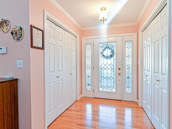 Situated in a quiet, residential neighborhood, this home has been lovingly maintained by its original owner. It is well-prepared for the winter months with the attached 2-car garage and standby propane generator. Enter from a farmer's porch where you can enjoy watching the seasons change. Once inside you'll be greeted by a wonderful, sun filled great room in this modern one level home. Notice the details of crown moldings throughout and gleaming hardwood floors. This property offers three generous bedrooms including a primary en suite bedroom and a second full bath. The eat in kitchen and formal dining room allow for plenty of entertaining. The kitchen leads to a newer trex deck perfect for viewing wildlife and soaking up some sun. The full dry basement is ready for your ideas of renovations. Homes like this don't come along very often so don't miss this one!