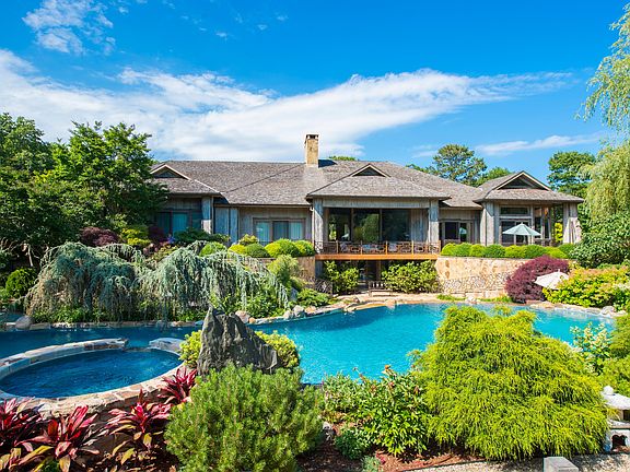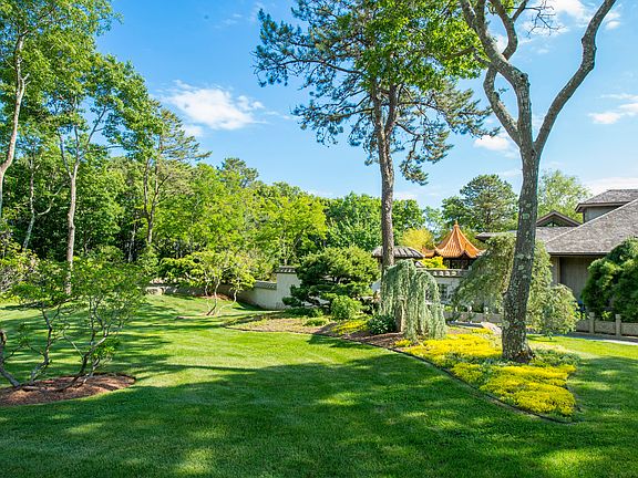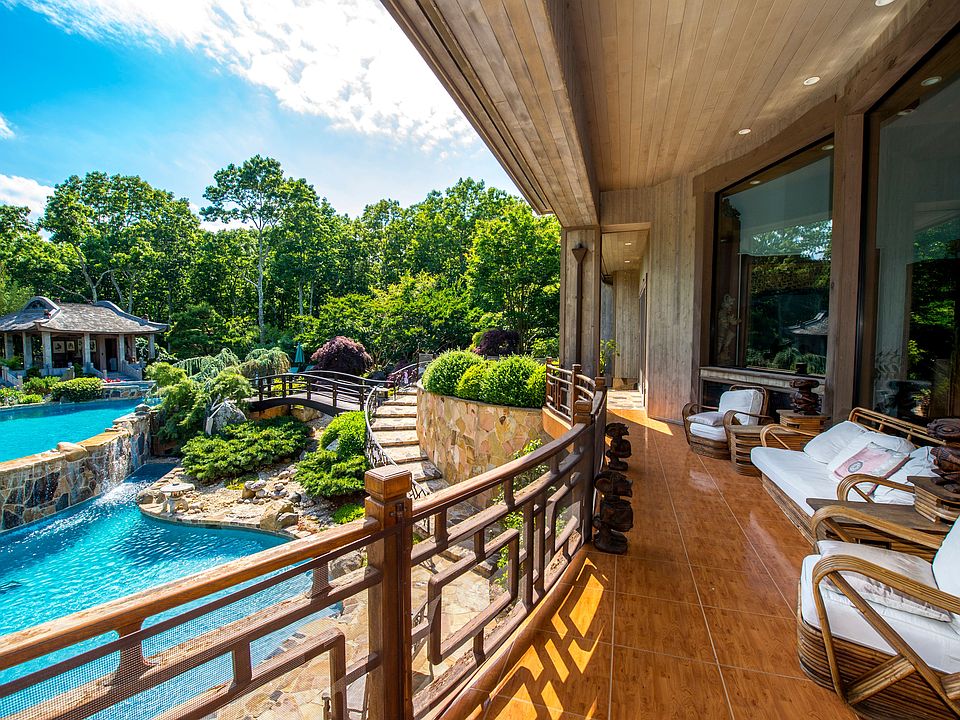 More than 4.5 +/- acres of artistically designed gardens incorporating Taoism, Confucianism and Buddhism, this Bridgehampton estate must be seen to appreciate the unique concepts of design and creativity. A complex plan of gardens mindfully designed by Jian Guo Xu, a noted Chinese artist, and created by John Whitney, landscape and garden designer. The property's feature garden structure with 500 year old doors is a replica of a 15th-century temple in Beijing. Winding paths, water gardens, bridges, stone sculptures, rocks, curved bridges, sitting areas, paths, trees and plantings are a masterful creation of Feng Shui design. Notable outdoor structures include an open-air pavilion adjacent to a koi pond, a pool/tea house with a full bath and shower and gazebo in the bamboo garden. Viewed from the main house and set within the gardens is a spectacular lagoon-like two-level pool and spa surrounded by natural stone patios and walkways. Additional features are a traditional moon gate, stone sculptures, inlaid paths and meditating gardens incorporated into the landscape. The 9,000 +/- sq. ft. house has seven bedrooms, seven baths and five half baths. The first floor has a large central living room, dining room, kitchen, two master bedrooms and guest bedrooms. The upper floor has a family room and library. The finished lower level has a living area, bedrooms, bathroom, wine cellar and glass doors that open to the lower pool area.