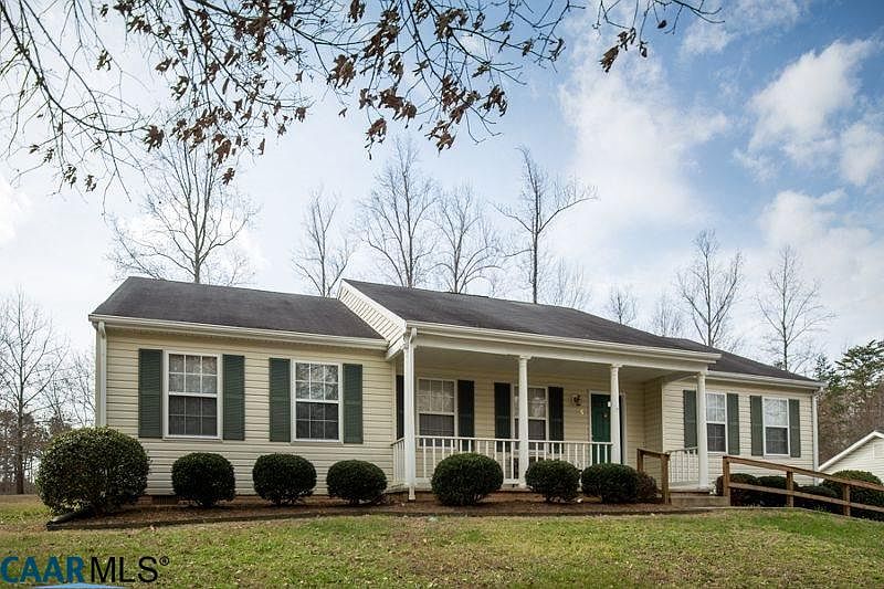 Character at a price you can afford. Spacious, split bedroom design, large master suite w/walk in closet & attached bath, vaulted family room with gas log fireplace, 2 additional bedrooms w/ large closets, walk up attic storage area, fully equipped kitchen, hardwood floors, large laundry/mud room with private interior & exterior entrance. Newer Trane gas heating system, newer hot water heater, lots of closets, storage shed, large back deck, paved driveway, covered front porch & level, corner lot. Convenient commute to Charlottesville. Close to restaurants, shopping & amenities.