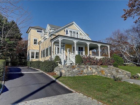 This property belongs in a magazine! Perched on a hill overlooking Narragansett Bay and just steps to the beach, this is one of Barrington's most admired homes. Originally built in 1870, this property underwent a total renovation in 2007. Step inside from the lovely wrap around porch and admire the many architectural details throughout. The entryway opens to a lovely living room with a fireplace, the hall leads to a formal dining room with a fireplace, built-ins and french doors to the porch. The granite kitchen offers stainless appliances and expands into an inviting family room with an informal eating area - perfect for entertaining. A gracious curved staircase leads to a second floor featuring a master suite with panoramic views, a balcony, a luxurious bath and double walk-in closets. There are three additional bedrooms - one with an en-suite bath and one with its own very special loft space any child would treasure. There is also a laundry room, an additional family bath and a back staircase leading down to the kitchen. The lower level offers a large recreation room as well as ample storage space. The professionally landscaped yard offers beautiful plantings, including hydrangea, perennials and an irrigation system. The private back patio is perfect for any summer evening while the veranda offers magnificent views - the perfect spot to watch the endless boating activity on Narragansett Bay. Amble down to the beach for a swim, kayak, paddleboard or to catch a fish!!!