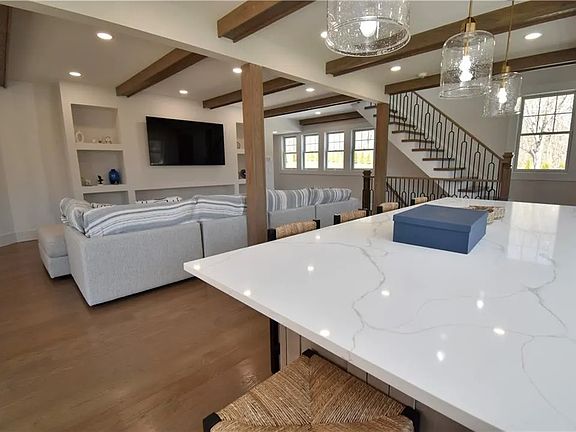Beautiful stone fireplaceMassive quartz islandPremium new appliancesFinished basement roomPrivate walkout deckStunning kitchenOutdoor shower