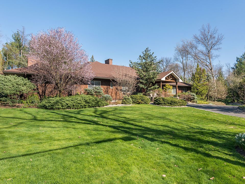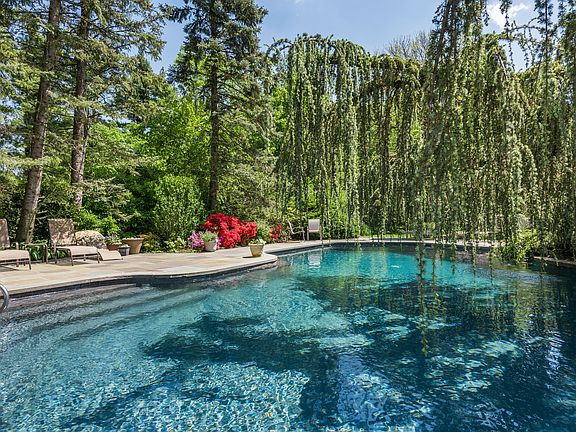 Stunning MODERN open concept one floor living on prime Rye cul de sac offering uber convenient locale. This modern design takes full advantage of its gorgeous, private near one acre grounds with walls of glass out to the rear deck accessed from all rear facing rooms. Step down to a gorgeous free form in-ground, heated pool with Bluestone patios and pool cabana, ideal for entertaining with summer kitchen and full bath. Six bedrooms with a master suite, plus four additional bedrooms on the first level. The second floor offers a private guest suite with sitting area. Dramatic library off the master suite is accessed from main hall and has cathedral ceilings, walls of glass and walls of floor to ceiling bookshelves as well as fireplace and wet bar. Lower level offers amazing finished space (additional approximate 650 square feet) ideal for a gym, wine plus tremendous unfinished space for multipurpose use! Attached 3-car garage. A spectacular setting lets you feel like you are on a vacation retreat year round. Move in for summer and entertain poolside.
