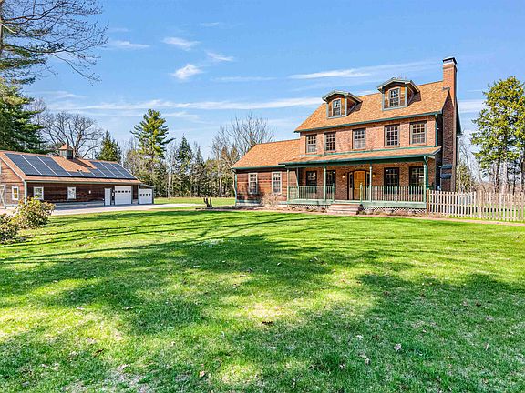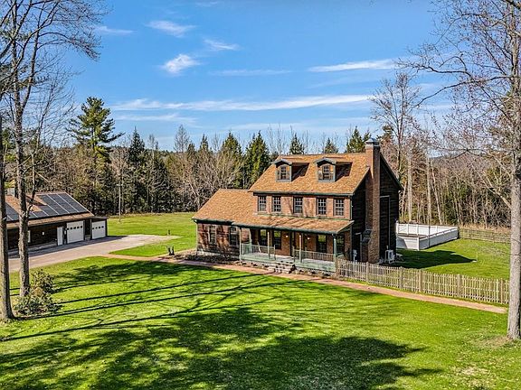 A FANTASTIC & RARE OPPORTUNITY awaits with this amazing 3 story farmhouse colonial on a gorgeous 6.39 acre private lot-perched high above the Lamoille River, with an oversized, heated 3 bay garage, workshop, full 2nd floor, & 1/2 bath. Not to be missed is the impressive 50x100 heated horse riding arena/storage building ready for any number of uses!! The wonderfully-maintained 3,000+ sq ft home welcomes you via the dreamy covered front porch into the entry/mudroom, kitchen, dining, and living rooms plus the 1st floor primary suite featuring a luxurious bath with soaking tub, tiled shower, dual sinks, dual closets, & BONUS room. The 2nd floor includes 3 add'l bdrms, 2 FULL baths, and laundry rm to the huge 3rd floor family room! Hardwood floors, 6 mini split heat/AC units, central vac, & a huge, dry basement with exterior access. Outside is an entertainer's dream with a heated 18x36 inground pool w/waterslide, expansive decking, & lit yard for exceptional evening fun! Established apple orchard, fenced pet area(s), woodshed, water spigots, walking trails, and direct walkable access to the adjacent state lands for hunting, fishing, and exploring nature and the great outdoors! This very special one-owner property exudes peacefulness & serenity combined with being only 1.5mi to I89 and minutes to Burlington or Lake Champlain--it is ready for it's next owner to begin making wonderful new memories!! *Add'l features list is uploaded.