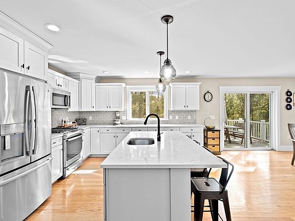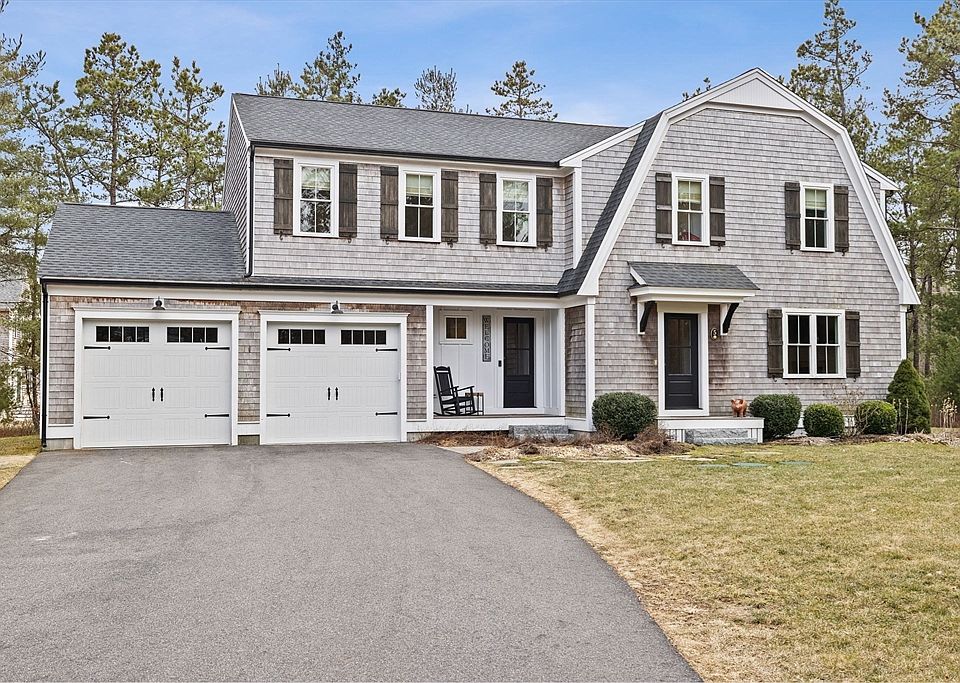 Welcome to Crane Landing, a peaceful retreat nestled along Tihonet Pond. This exquisitely crafted Gambrel-style home features remarkable craftsmanship throughout. Enter into a generous mudroom, complete with custom built-ins and plenty of storage which leads to a finished two-car garage. The open floor plan reveals a stunning kitchen showcasing a central island, custom cabinetry, and stainless steel appliances, flowing into the dining area that opens to a maintenance-free composite deck perfect for outdoor gatherings. The inviting living room with a gas fireplace and coffered ceiling, exudes warmth and character. Upstairs the primary suite serves as a personal sanctuary, offering two walk-in closets and an elegant ensuite bath featuring a stone waterfall effect glass shower. Three additional bedrooms that share a well-appointed full bath, along with a home office and convenient laundry room with plenty of storage. Enjoy the sights and sounds of nature right at home!
