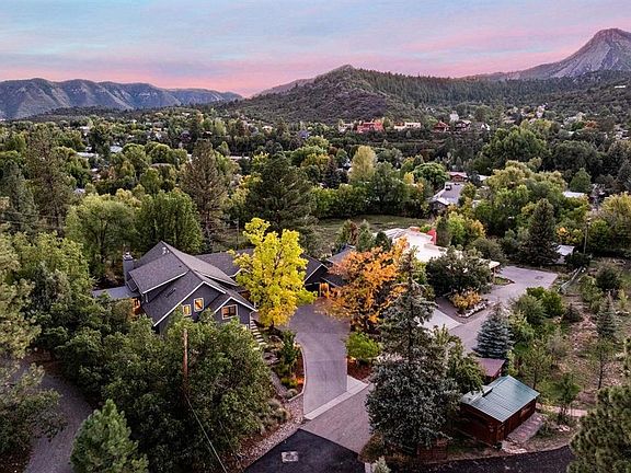 Rare In-Town Sanctuary | 2.2 Acres with Junction Creek Frontage. Tucked away on a private drive in the heart of Durango, this is a rare opportunity to own one of Durango’s most distinctive in-town properties. The 5,792 sq ft residence with a private 800 sq ft guest house sits on 2.2 acres along Junction Creek, offering the perfect balance of privacy, space, sophistication, and connection to nature. Thoughtfully designed, the main residence, which was built in 2012, features five bedrooms and three baths, complemented by a one-bedroom, one-bath guest home with its own entrance, yard, and parking space. Expansive windows frame panoramic views of Durango’s iconic ridgelines—including Perins Peak, the Hogsback, Smelter Mountain and Raider Ridge—while inviting natural light throughout the home. The main living area offers a welcoming atmosphere with a fireplace, soaring ceilings, and double doors opening to multiple outdoor living spaces. The gourmet kitchen is the true centerpiece, showcasing Carrara marble countertops, a 12-foot island with seating, professional-grade appliances including a commercial range and hood, dual pantries with pull-out shelving, and a separate bulk pantry. Ideal for both the home chef and large gatherings. With ample counter space and storage, this kitchen will not disappoint. Designed for versatility, the floor plan offers multiple living areas including a home office, den/media room, and spacious mud/laundry room. The primary suite, located on the main level, features a spa-inspired bathroom with soaking tub, steam shower, private patio, and a generous walk-in closet. Upstairs, a dedicated bedroom wing includes three bedrooms and a full bath. A bonus room with playful fireman’s pole, ¾ bathroom and private deck would function well as a recreation room, fitness studio, or additional ensuite bedroom. Designed for today’s modern lifestyle, this smart-home features in-floor radiant heat, two A/C units plus a Fujitsu split in the guest house ensuring year-round comfort. A high efficiency water heater tied into the boiler system provides endless hot water in the main house and a new high efficiency boiler was just replaced in the guest quarters. The Energy Recovery Ventilator (ERV) system provides fresh, filtered outdoor air while removing stale indoor air which improves the indoor air quality and comfort. Automated blinds and lighting; central vacuum system; integrated speaker systems inside and out; security system; Nest fire and smoke detection system; high-speed wired/wireless internet; multiple WIFI repeaters; and hardwired internet and P.O.E data connection points throughout are added features. The garage is equally well-appointed with built-in storage, epoxy flooring, and a snowmelt-ready driveway. The beautifully appointed one-bedroom, one-bath guest house is ideal for extended family, a caregiver, or independent adult children. With its private entrance, deck, yard, and parking, it can also serve as a long-term rental for additional income. The home, designed to take advantage of the incredible setting integrates the indoor and outdoor space. With expansive Trex and wood decks, two pergolas, stylish stonework, and meticulously planned native and introduced landscaping. The grounds have been artfully designed and complement the towering pines and natural boulders. The fenced lawn area separates the natural acreage that protect the privacy and create a habitat for wildlife Multiple patios offer multiple spaces to relax, unwind and enjoy Colorado’s four seasons. Stroll directly to Junction Creek, where approximately 140 feet of private creek frontage enhances the property’s unmatched setting. This property offers ultimate convenience with immediate access to the Animas River Trail, the Durango Community Recreation Center, and all school levels—while maintaining unmatched privacy right in-town. Don’t miss this rare opportunity to own one of Durango’s finest homes.