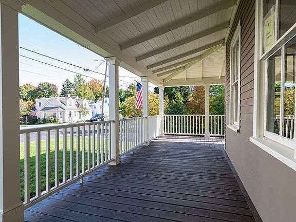 Stunning, 2 bed 2.5 bath townhouse with covered front porch. Kitchen has quartz countertops, stainless steel appliances and sliding French Doors to a spacious back deck for outdoor dining/entertaining or morning coffee, 1/2 bath on first floor. The second floor boasts a master bedroom with dual closets, master bath with quartz vanity, tile walk-in shower & tile floor; 2nd bedroom with a good size closet, full common bath with quartz vanity, tile bath & flooring, Linen Closet & Laundry Closet (w/Stackables!) within. Heating is by gas OR electric via a high-efficiency gas fired Navien Combi-Boiler that provides Hydro-Air heating & hot water on demand or a high-efficiency LG heat pump that provides both heat & air conditioning. 2 deeded off street parking spaces, small extra storage in basement. Located in Hingham Center Local Historic District & is a short distance from Hingham Ctr w/shopping, dining, Hingham Harbor & Town Beach