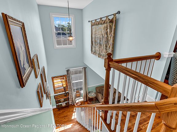 Jersey shore at its best! Welcome to Breezy Point! This quiet, quaint community is situated along the Barnegat Bay just across the Seaside Bridge, minutes to Barrier Island beaches & boardwalks! Pull into your 2-3 car driveway that can be used for guests while you use your 2-car garage. This elegant colonial welcomes you inside with a dramatic foyer and 1st floor soaring 9ft ceilings. Amazing floor plan with open kitchen/dining room that flows naturally into a large living/sitting room. Beautiful finishes include granite counters, hardwood floors, ss appliances, custom antique white cabinetry and a wide-open wood banister staircase. Head upstairs to 4 spacious bedrooms w/ brand-new carpet. Primary bedroom features a large walk-in closet, tons of windows & natural light, private balcony & a primary bath w/ dual-sink vanities. Another full bath and walk-in laundry room complete the 2nd floor. Head back down and sliders from the living room take you to an outdoor heaven. Spacious patio w/ newer pavers lend to whatever your grilling and entertainment needs are. Location, location, location! Just one block from open Bay & Bridge views. Have a boat or jet ski? Walk to Horizon Marina which offers 180 boat slips, updated amenities and quick access to the most popular waterfront destinations. Breezy Point is conveniently right off Rt 37, minutes to the Parkway and local shops, grocery stores & restaurants. Don't miss out on this summer or year-round gem!