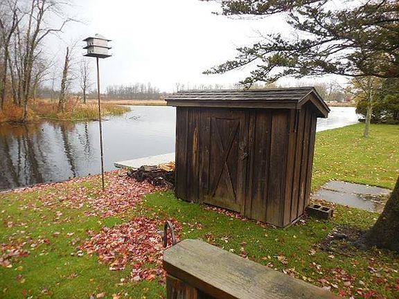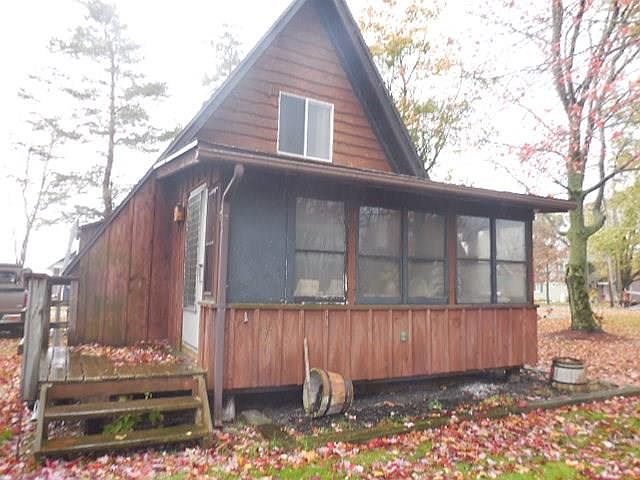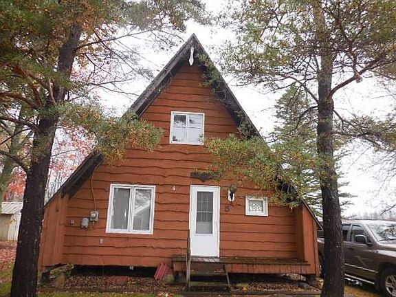 Very nice seasonal cottage with 2 bedrooms up 1 down and enclosed porch wood stove for heat and waterfront also includes most of furniture beds appliances and party boat about 15 years old private road and well is for all cottages and is turned off for winter