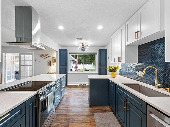 Amazing 4-bedroom, 3-bathroom brick ranch, featuring loads of updates and a large in-law suite with private entrance, bathroom with tiled shower, new toilet, new shower doors, kitchenette with 2 burner induction cooktop, microwave, refrigerator, living/bedroom combo. The main house offers so many upgrades - GORGEOUS kitchen with quartz countertops, stainless steel appliances (2023/2024), new cabinets, & cozy breakfast nook. The large great room features a wood-burning fireplace. Entertain in the formal dining room or relax in the formal living room. The Florida Room, situated between the main house and the in-law suite, overlooks the terrific inground pool and sundeck. Additional highlights are: roof (2021), water heater (2022), and a 3-zone HVAC system installed in 2018 with a dehumidifier added in March 2024. The property is equipped with hurricane shutters, roof clips, and garage door braces, ensuring hurricane preparedness. The pool area features a gorgeous inground with a new pool liner (2021), an outdoor shower, and a spacious pool deck. The .49-acre lot backs up to the a greenbelt with amazing wildlife and includes a storage shed that is bolted-down for hurricane safety. The garage has 50 & 30 AMP hookups for your RV. 3 skylights provide natural light. The home is under a transferable termite contract. An accurate existing survey is available.