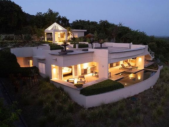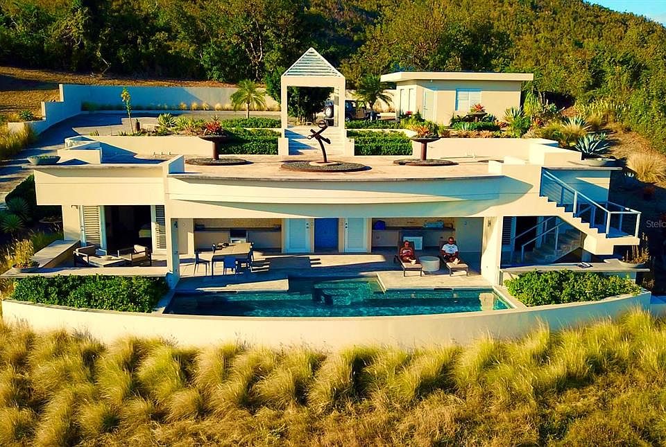 Quinta Jabalí presents a rare opportunity to own an exceptional architectural gem in one of Vieques’ most sought-after locations. Brilliantly designed by renowned architect Stanley Hutchinson, this exceptional estate seamlessly blends modern elegance with natural beauty. Perched high on a hillside, the home is masterfully positioned to capture sweeping 180-degree views of the Caribbean Sea. The elevated design creates an eagle’s nest effect, offering breathtaking vistas from nearly every angle, while the structure itself is thoughtfully integrated into the terrain — allowing the lush gardens and panoramic views to exist in perfect harmony. This fusion of architecture and landscape makes living here an unforgettable experience. Set on over two acres of beautifully landscaped grounds, the property is a botanical paradise cultivated over decades by its current owners — both expert landscapers. From the moment you pass through the gated entrance, you're transported into an extraordinary world rarely found elsewhere. The gently curving driveway winds through majestic elephant-sized boulders, rare tropical plants, stately palms, and fruit-bearing trees. The residence currently serves as a private one-bedroom home but was intentionally constructed with the infrastructure to be effortlessly expanded into a four-bedroom layout. The smart floor plan wraps around a serene pool and open-concept outdoor kitchen (grill-ready), ideal for relaxed island living. A detached garage was also designed to be easily converted into an open loft for guests or a studio space. An expansive grand terrace with a gazebo offers the perfect setting for sunset soirées that transition into starlit gatherings—ideal for entertaining in true Caribbean style. Located in the exclusive enclave of La Hueca, surrounded by other distinguished estates and adjacent to the Vieques Wildlife Refuge, Quinta Jabalí offers not only privacy and prestige but also proximity to nature’s most stunning landscapes. The property’s carriage-style porte-cochère and timeless design evoke the elegance of a St. Barts estate. Sustainability and self-sufficiency are key features of this estate, which includes a spacious laundry / storage room, 30 solar panels, tesla powerwalls, two 14,000 gallon cisterns, and eco-conscious infrastructure. This is not just a home—it’s a legacy property that captures the essence of a luxury island lifestyle.