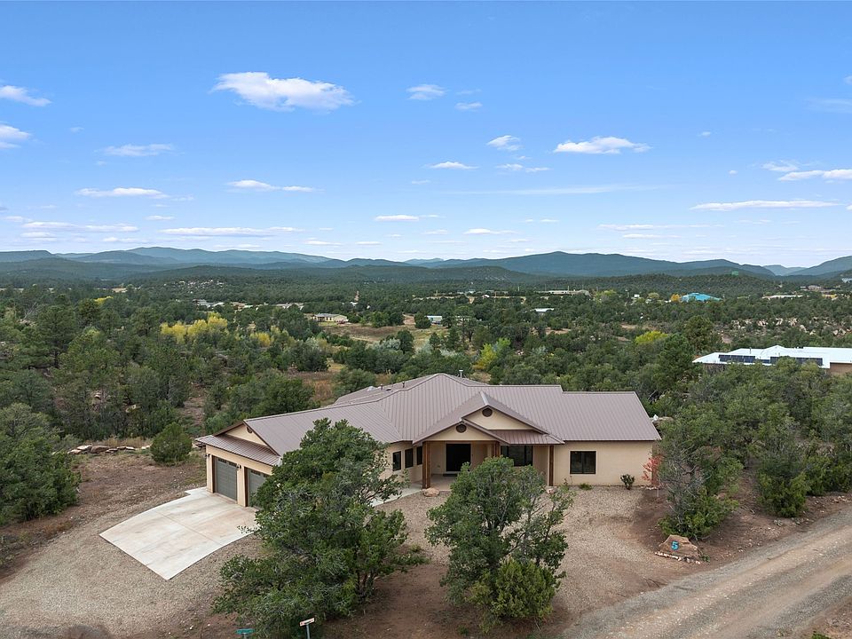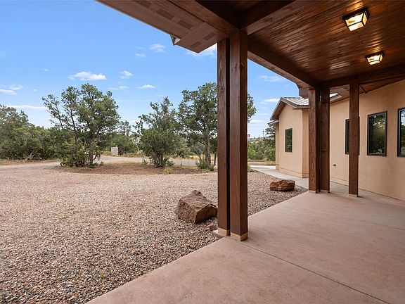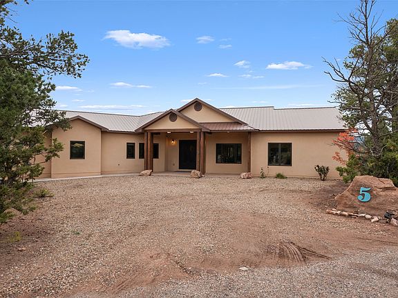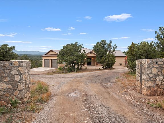 Peaceful Elegance, Effortless Access & Stunning Mountain Views. Built in 2021 and set on over an acre of tranquil land with sweeping mountain vistas, this gorgeous 3-bedroom, 2.5 bath home with a private office/study offers the perfect blend of peaceful country living and easy access to town. Located right off a county-maintained road, it’s a dream for Santa Fe commuters—roads are plowed in winter, and you can simply drive straight out without worrying about maintenance or snow removal.