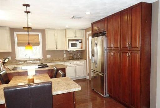Fabulous expanded ranch offering 4 bedrooms and 3.5 baths. The rear addition allows for a huge, gourmet, fully applianced (stainless steel), kitchen with custom cabinetry, desk area, pantry, and center island/dining area. The living room is just off the kitchen and has French doors leading to the sunroom. Large formal dining room with wet bar. The master suite with vaulted ceiling offers a huge walk-in closet and a full bath with jucuzzi tub and tiled shower. The lower level offers 4 rooms and a full bath and could be used as a potential in-law or au paire suite. Access to the pool area from the kitchen, sunroom, and 2nd bedroom. The hot tub and the cabana are included in the sale. The 2 car garage is spacious, has high ceilings, and storage area. Central air. Fenced lot. Neighborhood location. Very convenient to banking and shopping.