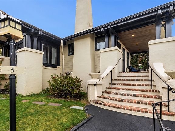 Welcome to 5 Quincy Avenue, an architecturally stunning Bungalow located in Winthrop's highly sought-after Highlands neighborhood . This sun-filled 3-bedroom, 2-bath Craftsman home has an open-concept living and dining area featuring original rich oak woodwork, built-in cabinets, hardwood floors, decorative molding, wainscoting, and a fireplace. The renovated eat-in kitchen, equipped with stainless steel appliances and marble countertops, overlooks a private backyard with an inground heated swimming pool, ideal for summer entertaining. The home's classic details are beautifully complemented by contemporary elements. Both renovated baths feature marble and subway tile. Ample storage is available throughout the property. The home also features a large front porch with partial ocean views, an attached one-car garage, and a two-car driveway. Easy access to Boston only six miles away. Experience the feeling of living like you are on vacation in this sea side community.