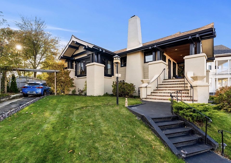 Architecturally stunning bungalowPrivate backyardRenovated eat-in kitchenOriginal rich oak woodworkHardwood floorsMarble and subway tileMarble countertops