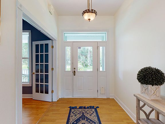 This is the home you've been looking for! Tucked away in the beautiful Hidden Hills neighborhood of Ormond Beach, this immaculately updated tri-level family home is perched high and dry with stunning views of the canal, and offers tons of living space with Southern charm! As you cross the wide front porch, you will immediately notice the little details that make this house shine. Enter through the antique front door to find a large, open-concept main living area with large windows highlighting the stunning natural views beyond. Enjoy quiet evenings in front of the fire, or soak in the lush landscaping and local wildlife from the screened rear patio. The remainder of the ground floor is comprised of a powder room, large bonus room/study with fireplace that could be used as a fifth