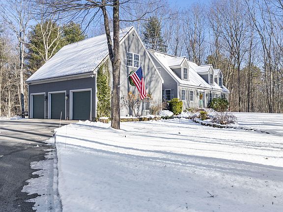 Located at the end of a private road is a stately and inviting cape that is full of possibilities. Inside enjoy an open concept kitchen, dining, and living space with a large island and wood burning fireplace for those cold winter nights. Included on the first floor is an office/den space that is perfect for a work from home situation, use as a home gym, or even a first floor bedroom if desired. Upstairs find three good sized bedrooms and a full bath on one side with the primary suite located at the other end of the hallway. See the flexibility in the three bay attached garage including a 240V outlet, usable for electric car charger or garage heater. Above the garage is a finished off game room space with potential as an in-law suite given the full bath and kitchenette area. Consider the possibilities for multi-generational living or additional income potential. Outside admire a private sanctuary from the large back deck with landscaping and flowering annuals that bloom three seasons of year. Enjoy the fire pit area on cool summer nights or walk through the trails in the back woods to the local Christmas tree farm. With a new heating system in place, there is nothing left to do but move in and make this gorgeous property your home.