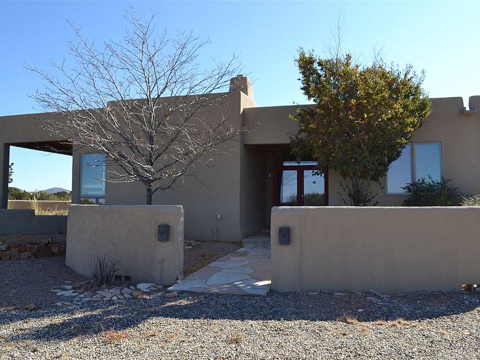 Wonderfully sited for Sangre views, this 3 bedroom displays a contemporary flair. Complimented with spacious tiled living and kitchen areas the sun loving interior features an island kitchen with abundant cabinetry and an expanded nook, master suite with kiva, roomy walk in closet with built ins, and a superb and generous bath to include a relaxing soaking tub and separated basins. A front court yard wall encloses the flagstone patio offering enjoyable outdoor living space.