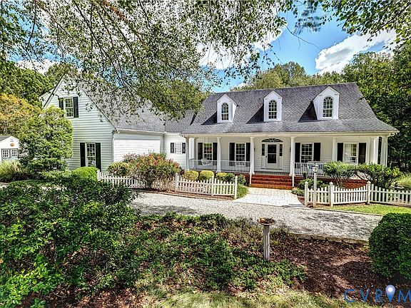 Nestled on a beautifully landscaped 2 acres in the heart of Manakin Sabot this elegant Cape Cod features 3 finished levels with multiple flex, family, office and recreation spaces throughout. As you enter the home the dining room features beautiful molding, wainscoting & column features with 9 ft ceilings and Canadian maple hardwood floors thru out. A chef’s kitchen featuring quartzite countertops, induction cooktop, double ovens, premium refrigerator, reverse osmosis water filtration system, and sunny breakfast nook flow seamlessly into the vaulted-ceiling living room - featuring marble-hearth FP, custom built-in's and side deck access adding to the indoor/outdoor living space. The 1st floor primary suite w/ spa-like bath offers convenience & luxury, w/ adjacent designer closet/dressing room further showcasing the high-end design throughout. Upstairs, an enormous rec/game/fitness/flex space, w/ full bath and cozy window seat. The spacious-sun-filled office/studio w/ private stairway access from attached garage, offers endless possibilities & flexibility.