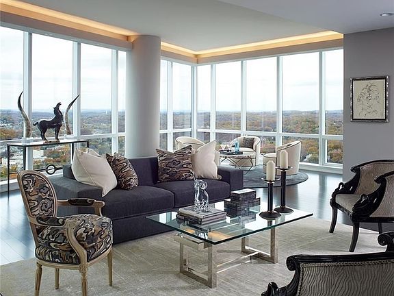 There is a place only minutes from Manhattan where life is rather perfect, and only seems to get better! Welcome Home. This custom built penthouse in the sky offers a modern approach to design, with refined finishes and elegant touches at every turn. High ceilings, walls of glass, and large rooms feature sweeping views of the Manhattan skyline, the Long Island Sound, the Westchester country side and distant views to Stamford. Along with the spectacular panoramas, you are greeted with a grand kitchen that serves as the home's hearth. Bathrooms are luxurious and lined in marble with an artful flair. A perfect mix of luxury and comfort. Dream-like master suite plus 2 additional bedroom suites plus a library/office. The building features 5-star service and the sort of amenities most people associate with Park Avenue. This home is surrounded by great restaurants and shopping and all within the reach of New York City.