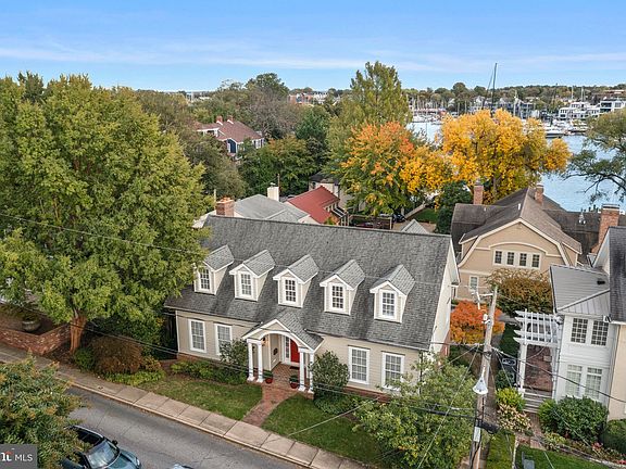 Absolutely one of the best homes and locations in Historic Annapolis! Custom built and artfully designed in 2005, this bright Cape Cod has an open floor plan with water views of Spa Creek. Rare one car garage and driveway parking for three additional cars! Meticulously maintained with three levels of bright and flexible space. Hardwood floors, custom moldings, recessed lighting, cooks kitchen, 2 wood burning fireplaces. Primary suite with balcony overlooking Spa Creek has a remodeled ensuite bath (2022). Enjoy sunset across the water from the dining room, a morning cup of coffee on the private balcony off the Middle Room , sleeping with nighttime breezes from the open French Doors in the Primary Suite or dinner from the private patio and beautiful backyard gardens. The lower level offers a private bedroom, full bath, and retreat for your guests! Just a short walk to City Dock.