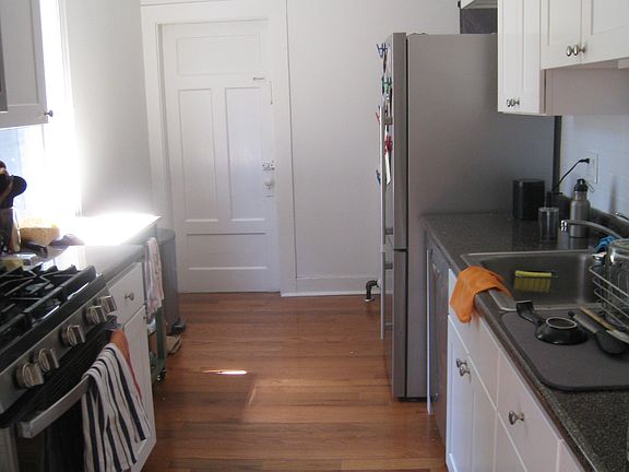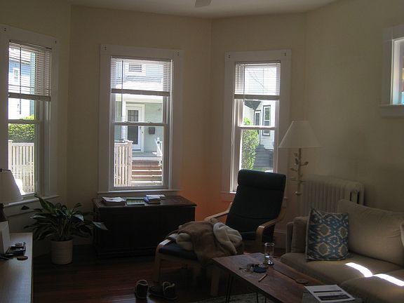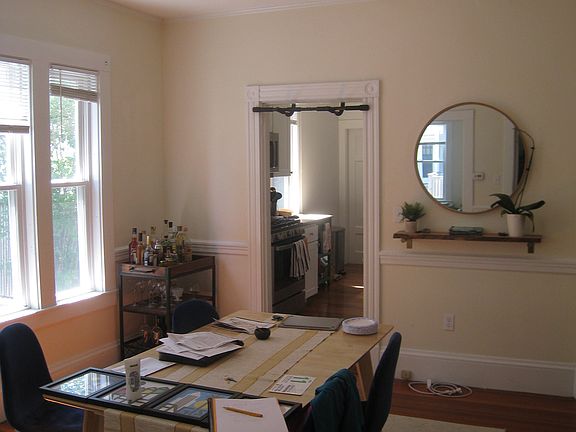 This first floor unit consists of a dining room, living room, kitchen with a small pantry, a standard size rear bedroom and a smaller bedroom/study. The kitchen is being renovated and will have new kitchen cabinets and stainless appliances. It offers a ten minute walk to Porter Square and a six to eight minute walk to David Square. Landlord requires a first month and a security deposit. There is a one month rental fee.