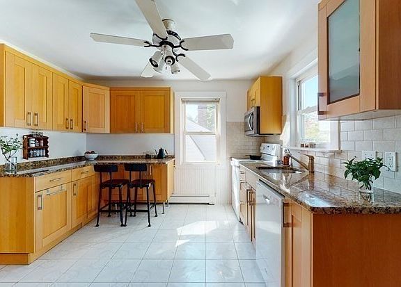 Located on an inviting tree-lined residential side street, this 3+ bedroom, 2-bath home provides comfort and versatility for the ultimate live-work environment. Rich in natural light and period woodwork, the classic main level plan offers easy flow between living and dining rooms; an updated kitchen with granite counters; pantry with in-unit laundry; and two equal sized bedrooms separated by a full bath. Enjoy the shifting seasons from the front sun room or retreat to the private rear porch that connects to the garage with exclusive roof rights. The flexible top floor space can be utilized as a primary suite with full bath and separate office or walk-in closet, integrated as an upper family room, or dedicated as a private abode. Garage parking for one car + two driveway spots. Pet-friendly association with no condo fee. 2016 roof. Conveniently located between Waverley Square and Cushing Square, near local parks, and easily accessible to public transportation into Cambridge and Boston.