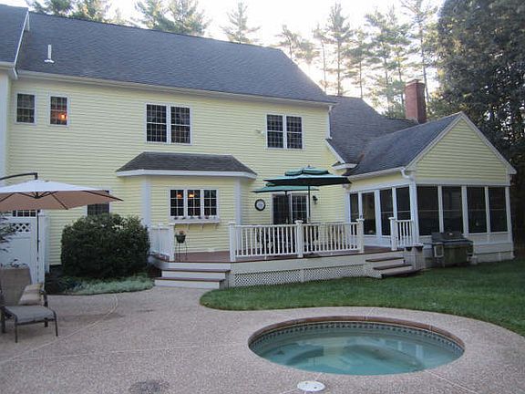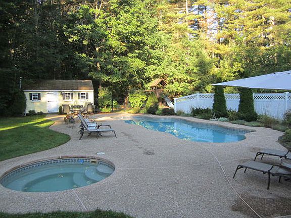 Welcome to your own private Oasis in the Exclusive River Bend neighborhood, where families enjoy peaceful tranquility, friends share time together & memories are made. This 5 bed, 3 and a half bath custom colonial boasts an open concept with a cozy, family centric flow. The open kitchen features custom cherry wood cabinets, stainless GE Profile appliances & a large center island. With a central eat-in area and a bright dining room w/custom crown molding & a wet bar. The sprawling family room features vaulted ceilings & a fieldstone fireplace. The 2 addl bonus rms w/French doors can be used as an office, study or play room. All have recently re-finished hardwoods throughout. The vaulted master has an en-suite, soaking tub & twin walk-in closets. The other bedrooms have brand new carpeting and convenient hallway laundry. The finished basement can be used as a media/game room, gym or office, with a walk-up to the 3 car garage or back yard. There is also a clean dry 3 season "Florida" room over looking the tranquility of the back yard oasis with a mohangony deck, custom in-ground heated pool, large Jacuzzi tub - both salt chlorinated - and pool house. In addition, there are speakers everywhere, Mass-Save insulation & a new hot water tank. Rounding it out, there's 5 year young exterior paint, both front & rear sprinklers and parking for up to 10 cars. Enough to accommodate all of your family and friends. Completely turn-key ready, there's nothing to do but move right in!