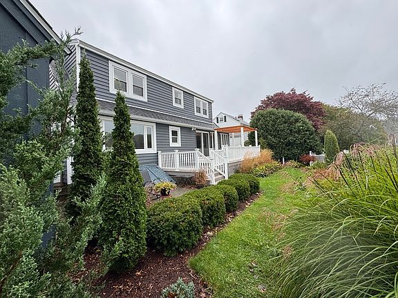 Idyllic private backyard with panoramic views of Forest River in Salem, MA, a short walking distance to the Marblehead Rail Trail and scenic views of Salem Harbor. Enjoy nature’s beauty while you barbecue and sit at the gorgeous deck or under the brand new pergola of this renovated two-bedroom, two bathroom Cape-style home with garage and ample additional parking. The first floor offers a spacious living room with full water views, hardwood floors, a beautiful gas fireplace and a full bathroom with steam. The bright and sunny kitchen overlooks the water and marsh and features stainless steel appliances and quartz countertops, and opens up to the dining room. Upstairs, retreat to a spacious master bedroom with ample storage and custom built-ins, a second bedroom and a stylish full bathroom. Enjoy the game with your friends in the finished basement that features a second gas fireplace, laundry, additional storage and space for an office or gym.