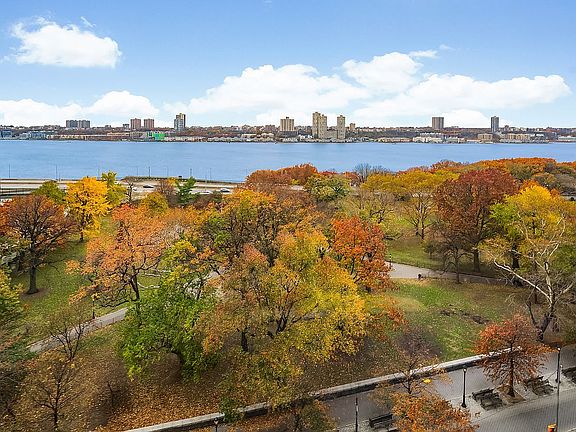 Offering panoramic direct Hudson River and Riverside Park views, this exceptional sun-filled and bright high floor corner 2 bedroom / 2 bathroom art deco prewar home (built 1937) resides in 5 Riverside Drive, a sought after white glove full service cooperative bld. Features of this glorious home include a gracious entry leading to a grand scaled sunken living room with oversized picture window, original herringbone oak flooring, beamed 9' ceilings & a decorative fireplace, a separate dining gallery w/built-in curio cabinet, and a windowed galley kitchen. Other features include a large primary bedroom with a corner window and en-suite original art deco bathroom, and a corner secondary bedroom with sweeping river views with an adjacent hall art deco windowed bathroom. Thru-wall AC in all major rooms, washer / dryer allowed with board approval, intact art deco prewar detailing and exceptionally large closet space (two are walk -in!) completes this beautiful and rare prewar home! BLD: 24 hour doorman, resident superintendent, porter, basement storage (waitlist), bike room, central laundry room, pets allowed, sorry but pied-a-terre ownership, co-purchasing and guarantors are not allowed. Ideal Westside location, Riverside Park right outside your door with it's dog run, running paths, tennis / volleyball / basketball courts and children's playgrounds, adjacent to Hudson River Greenway, multiple grocery options (Fairway, Citarella, Trader Joes, Zabars), close to crosstown buses and the 72nd Street Subway (1,2,& 3 lines), and nearby shopping and restaurants.