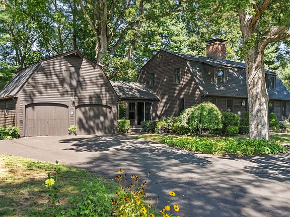 Built by renowned Wethersfield homebuilder H. Bosworth, this classic Dutch Colonial offers over 2,300 square feet of thoughtfully designed living space on just under an acre of land. Ideally situated on a picturesque corner of one of the town's most beloved streets, this home showcases a circular driveway and masterfully combines craftsmanship with warm, inviting charm. The main level features a welcoming front foyer, a spacious living room with a fireplace, a formal dining room, a cozy den, half bathroom and a kitchen with a charming dining area and second fireplace. Upstairs, a generous landing leads to the primary bedroom with a private bath, two additional bedrooms, a full hall bathroom, and ample closet space. An attic fan provides effective seasonal cooling, and an enclosed porch offers a peaceful retreat. The home features a spacious two-car attached garage with additional attic storage and an over-size shed. Recent 2025 updates include a new roof, a fully rebuilt chimney, the Weil-McLain natural gas furnace serviced and beautifully refinished hardwood floors on the main level. The exterior has also been freshly stained, adding to the home's curb appeal. Located in the Highcrest Elementary School district, this property backs onto town-owned farmland, offering added privacy and scenic views. Close proximity to restaurants, shops, golf course and convenient highway access. Andersen replacement windows provide enhanced energy efficiency, complemented by the convenience of a central vacuum system. The property features a unique dual septic system with dedicated lines: one specifically for wastewater from the washing machine and dishwasher, and the other for general household waste-an efficient setup designed to optimize system performance and longevity. Enclosed 15' x 13' porch with four sets of sliding doors adds an additional 195 square feet of living space, not included in the total square footage.