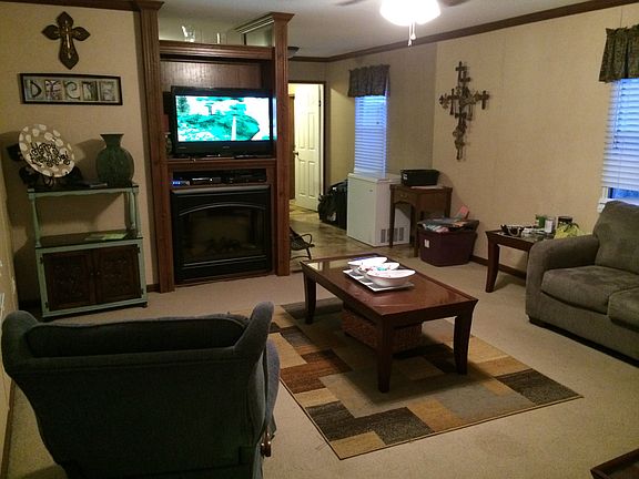 Beautiful mobile home that has been well kept. Bought new in March of 2012, the price includes the following: front porch (20x10), back porch(16x10), kitchen appliances (GE). Has a laundry room, electric fireplace and large master bathroom! Must be moved from current location.