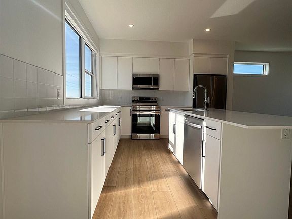 Experience modern living in this beautifully designed end-unit townhome, ideally located in one of St. Albert’s most sought-after communities. Thoughtfully crafted for comfort and style, the open-concept main floor welcomes you with abundant natural light and an upgraded kitchen featuring sleek cabinetry, stainless steel appliances, and ample counter space. Upstairs, the spacious primary suite offers a private ensuite and generous closet space, while the second bedroom and full bath provide versatility for guests or a home office. Enjoy year-round comfort with central A/C, a double attached garage, and an end-unit position that offers additional light and privacy. Surrounded by parks, schools, and everyday amenities, this home blends modern design with low-maintenance living in a prime St. Albert setting.