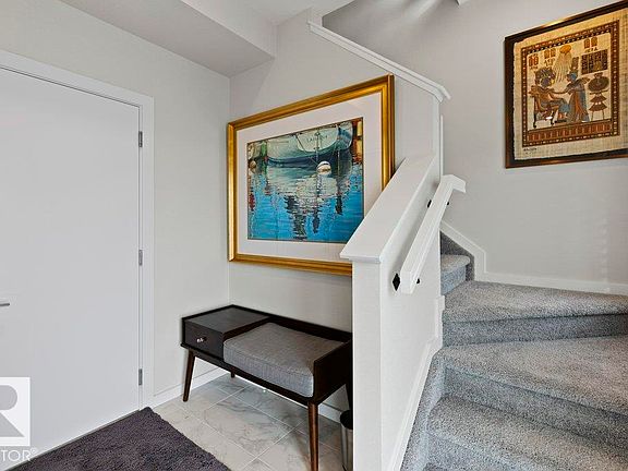 Welcome to Midtown by Averton, a luxurious townhome community like no other in St. Albert. With over $150,000 in UPGRADES, ROOF TOP PATIO & the best views in the complex this gorgeous 3-storey home is BETTER THAN NEW. Featuring 2 bedrooms both w/luxurious ensuites & custom closets, chef inspired kitchen and elegant dining area. Upgrades include a custom kitchen w/extra cabinet storage, floating shelves, Professional Series Kitchen Aid appliance package, bar fridge, gas stove, luxury vinyl plank flooring, whole house soft water system, Air Conditioning, charcoal & UV Light Air Filtration, exquisite imported light fixtures, Kohler intelligence toilet, Kohler sinks & hand towel bars plus Hunter Douglas Silhouette blinds. Top it off with a completely finished double attached garage w/ POLYASPARTIC COATED FLOOR & TESLA EV CHARGING UNIT. Enjoy a luxurious, low maintenance lifestyle like no other. Say goodbye to shoveling snow, cutting grass & building maintenance. But don't wait, this home will not last!