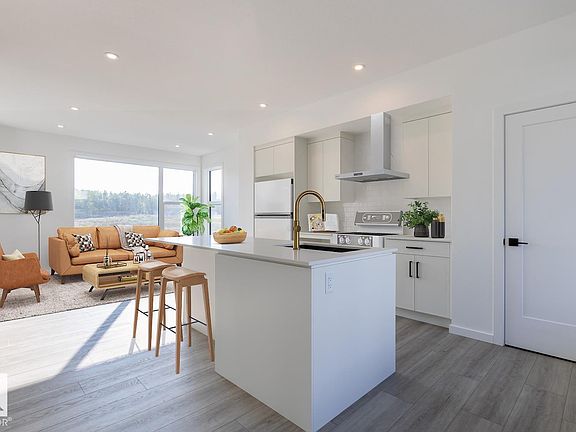 NEW CONSTRUCTION – POSSESSION READY FOR JANUARY 2026. Enjoy modern living in this 2-bedroom plus flex space, 2.5-bath end-unit townhome with an expansive rooftop terrace. The open-concept main floor features a clean white kitchen balanced with rich grey tones, a built-in pantry, upgraded backsplash, and a dining area that opens to a spacious deck. Enjoy a sunken powder room, vinyl flooring throughout, and upgraded bathroom layouts and fixtures. The third-floor laundry provides convenience, while an attached double-car garage with driveway parking adds additional storage and ease. This home in St. Albert offers easy access to nearby amenities and outdoor green spaces. Plus, receive full home warranty coverage and award-winning customer service. Images and renderings are representative of the home’s layout and/or design only and may include virtual staging. Exact finishes may differ. Sale price is inclusive of GST.