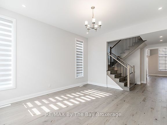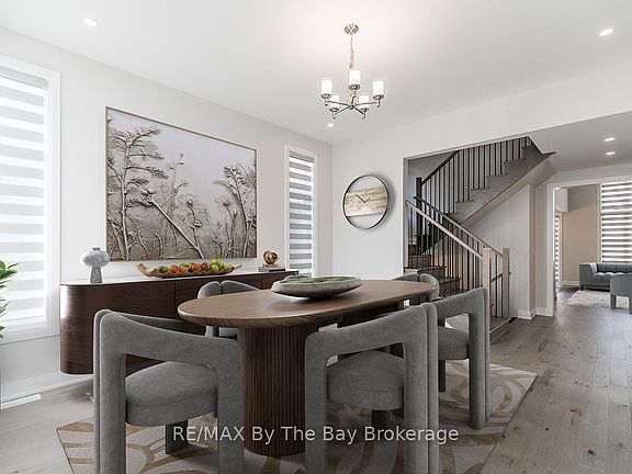 Welcome to 5 Rosanne Circle, located in the Rivers Edge development by Zancor Homes. The Talbot floor plan is a bungaloft style with 2,392 sq ft. This home features 4 spacious bedrooms, 2 on the main floor, 2 on the second floor, and 3 full bathrooms. As you step inside, you will immediately feel the exquisite design and upgraded elegant features of this home. The entrance, through to the kitchen, features 11ft ceilings, and thereafter, the remainder of the main floor includes 9ft ceilings and 8ft doorways. The pot lights situated strategically within the hallways, dining room, kitchen and living room areas create a warm and inviting atmosphere for you and your guests, while the engineered hardwood flooring throughout much of the main floor adds richness and texture to the spaces. The kitchen has two-toned cabinetry with gold hardware, upgraded light pendant light fixtures, upgraded stainless steel appliances, an island with under-mount sink, white quartz countertops and a large subway tile backsplash to round it all out. The living rooms ceiling is open to the above loft and includes a floor-to-ceiling window, allowing an abundance of natural light to fill the space. The living room also comes equipped with an electric fireplace and proper outlets above for tv hookup. The main floor primary bedroom has carpet flooring, large walk-in closet and has large 5-pc ensuite with upgraded double sink vanity , quartz countertops, upgraded tile flooring, soaker tub and stand-up shower. The laundry room is conveniently situated on the main floor with upgraded whirlpool front loader washer and dryer. The home comes with central vacuum, 200-amp electrical service, tankless on-demand hot water heater, HRV system, sump pump and air conditioning. Walking distance to Wasaga Beach Public Elementary School and future Public High School.