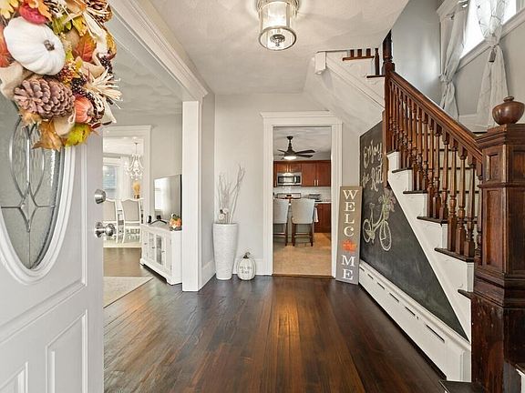 Absolutely nothing to do but move in! This house feels like home the moment you enter with its welcoming foyer, charming staircase & gleaming hardwood floors. The sun-splashed living room opens to the freshly painted dining room with beautiful crown moulding & new wainscoting. Cooking in this sleek kitchen with a modern flair will be a joy for any chef. It features granite counters, a gorgeous center island, plenty of cabinet space & a built in wine fridge. The stunning, newly remodeled 1/2 bath & laundry room complete this level of living. Upstairs offers a beautiful primary bedroom & 3 additional great size bedrooms & the 3rd floor is perfect as a 4th bedroom, playroom or home office. This home is situated on a double lot so the space that this home offers can be your own private summer oasis. Plenty of room to entertain family & friends or just relax under the pergola on the patio or deck. The added bonus is the close proximity to shops, restaurants, highway access and town center.